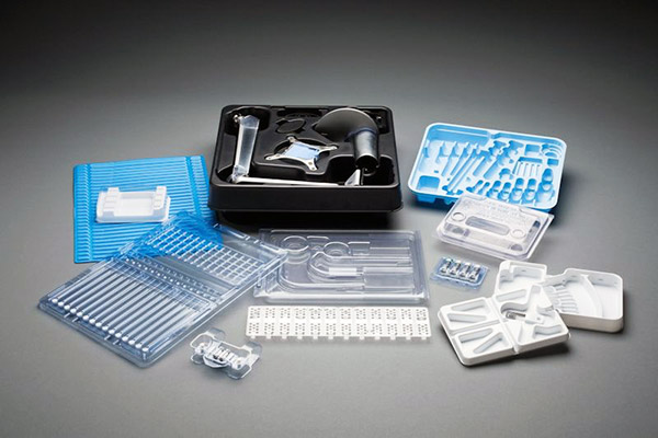 This is a type of vacuum forming, where thin or thick gauge plastic sheet is placed over a die, heated to a temperature that allows the material to become pliable, then is stretched over the surface of the die while vacuum pressure pulls the sheet down and into its final shape.